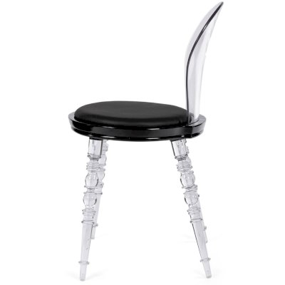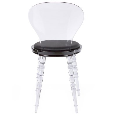 Дизайнерский стул Babel это традиционный классический дизайн мебели и сочетание элементов из пластика и эко кожи. Главным украшение стула стали резные пластиковые ножки. Удобное круглое сиденье и прозрачная вогнутая спинка обеспечивают комфорт использования и эргономику стула.