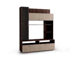 Компактная и функциональная стенка Дарина позволяет разместить множество предметов и защитить их от пыли, а также создать приятное настроение в комнате. Эта модель не только украсит гостиную, но и позволит аккуратно разложить и расставить десятки вещей. Такая стенка оригинально оживит интерьер, послужит отличным местом для хранения вещей, витриной для книг и комнатных украшений, и конечно, своё достойное место на ней найдёт телевизор – он станет главным визуальным акцентом композиции. Симметричный дизайн и сочетание контрастных оттенков цвета понравятся приверженцам классических линий, изготовленная из ЛДСП, она легко впишется практически в любую обстановку. Конструкция стенки сочетает в себе открытые ниши, вместительный выдвижной ящик, а также полочки за стеклянными и глухими дверцами.