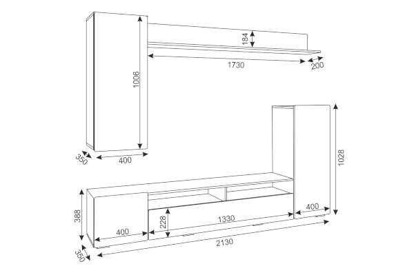 • Гостиная состоит из двух частей: монолитной напольной и навесной.