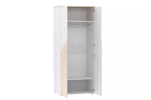 Двухстворчатый шкаф Банни поможет организовать хранение вещей в детской. Внутри модуля предусмотрены овальная штанга для одежды на вешалках. Широкие антресольная и нижняя полки подойдут для размещения коробок и аксессуаров. Классические глухие фасады надежно защитят содержимое шкафа от влаги и пыли. Скругленные ручки-кнопки не имеют острых граней.