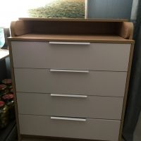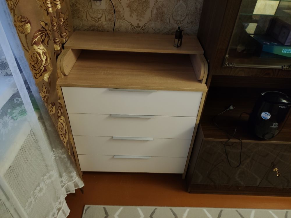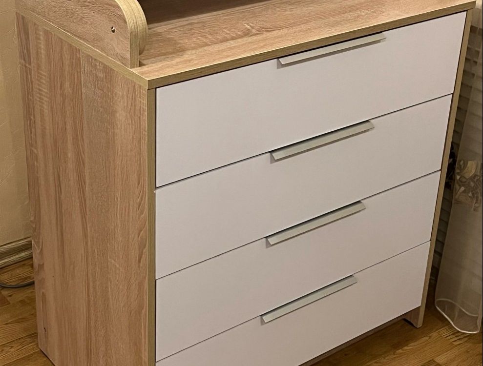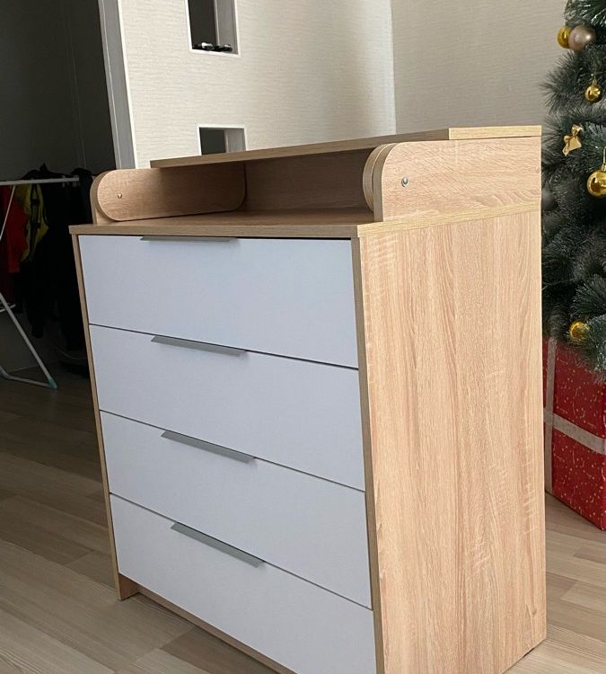 Комод очень понравился,качество супер,простой в сборке,ящики думала будут поглубже,но ничего для новорождённого самое то-вещи маленькие.