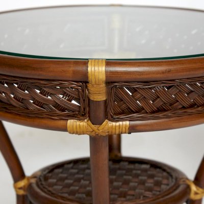 Изумительный террасный комплект мебели Secret De Maison из коллекции ANDREA, состоящий из столика и двух кресел, будет прекрасно смотреться в загородном доме, на дачной веранде, отлично подойдёт для отдыха на приусадебном участке. Уникальные плетеные узоры из натурального ротанга, выполненные вручную с использованием нескольких видов традиционного индонезийского плетения, добавят ноты изысканности и индивидуальности в ваш интерьер. Небольшой столик со столешницей из закаленного стекла, дополненный миниатюрной нижней полочкой, практичен и элегантен. Стекло обладает повышенной прочностью, долговечностью, способно многие годы не утрачивать своей первоначальной привлекательности. Два эргономичных кресла с мягкими подушками позволят удобно расположиться для комфортного отдыха. Тканевая обивка подушек проста в уходе, прослужит вам долгие годы, сохраняя свой первоначальный вид. Эта прочная и практичная мебель покрыта прозрачным матовым лаком, устойчивым к УФ-излучению, способна выдержать большие нагрузки, устойчива к повышенной влажности и долгие годы сохранит свой презентабельный вид. Комплект идеально сочетается с мебелью из коллекции ANDREA, поставляется в собранном виде.