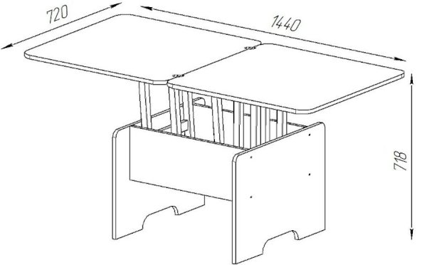 Стол-трансформер - очень удобная вещь для экономии пространства дома. Стол имеет механизм трансформации, обеспечивающий одновременное раскладывание большой (с откидной частью) и малой (поддерживающей) столешницы, что позволяет образовать два конечных положения: