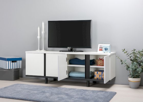 Это графичное сочетание, которое всегда на пике моды. Монохромный декор тумбы ТВ легко впишется в самый сложный интерьер. При изготовлении используются качественные ЛДСП толщиной 22 мм и 16 мм, кромка толщиной 2 мм и 1 мм. Такие материалы придают солидность внешнему виду, обеспечивают надежную основу и более долгий срок службы. В столешнице имеется вырез под провода для подключения мультимедиа техники, а регулируемые опоры легко компенсируют неровности пола.