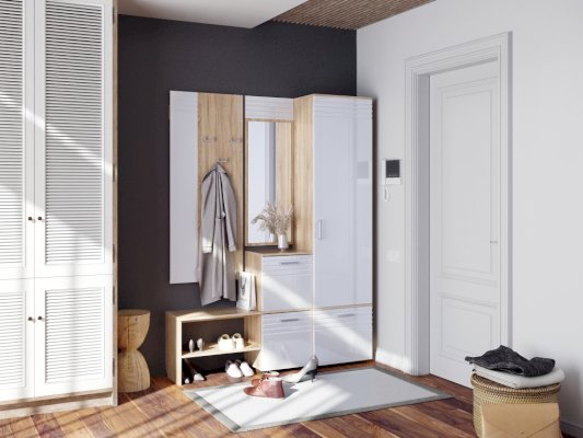 Пенал, который займёт минимум пространства в коридоре, довольно вместителен, поможет рационально организовать хранение верхней одежды, головных уборов и аксессуаров.