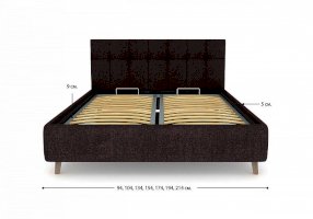 Двуспальная кровать с мягким изголовьем подойдет для современных интерьеров спален, а благодаря высоким ножкам впишется в стиль ретро, скандинавский или минимализм. В комплект двуспальной кровати с мягким изголовьем входит металлическое основание с деревянными ламелиями, а при желание кровать можно укомплектовать подъемным механизмом с бельевым ящиком.