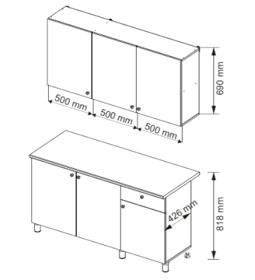 Высота верхних шкафов, мм 690
