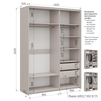 Наполнение шкафа выдвижные ящики / штанга