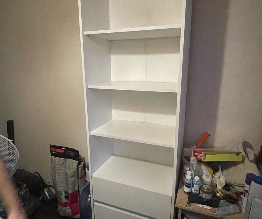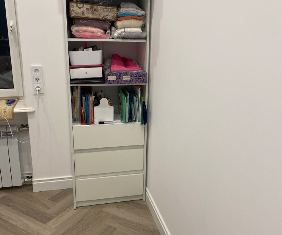 лаконичный, белый, с ящиками, высокий и глубокий, удобен для хранения и расстановки книг плюс хранение других вещей в комнате. прост в сборке - собирается за час максимум