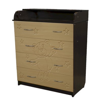 Вам понравится привлекательный внешний вид детского комода. На его лицевой части вы увидите углубленный декор в виде Мишки.