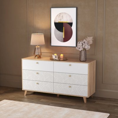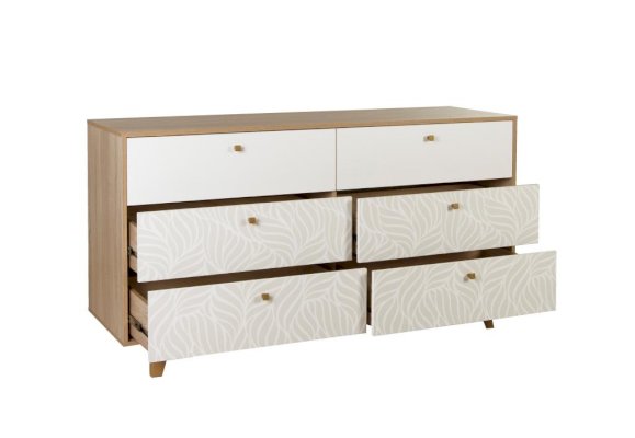 Вместительные широкие комоды «Адажио» – стильные и практичные предметы интерьера, они успешно справляется с задачей хранения и украшают помещение своим изящным видом. Принт на фасадах комода создан нашими дизайнерами вручную. Он служит отражением актуальных тенденций в дизайне и помогает создать по-настоящему уютный интерьер. Растительные мотивы, абстрактные формы и градиенты позволяют создать атмосферу спокойствия и безмятежности.