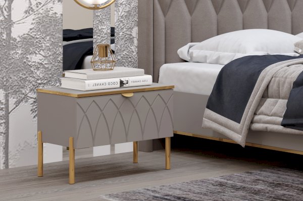 Тумбочки с спальню Капри 2 отличаются ярким дизайном и гармонично сочетаются с кроватями данной линейки. Модное цветовое решение в серой гамме «мокко» и «силк анис» гармонично впишется в современный интерьер.