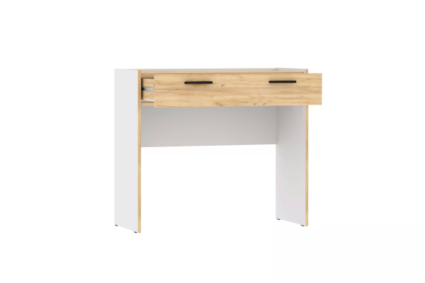 Столик оснащен выдвижным ящиком со встроенной перегородкой, что позволяет легко и удобно расположить всю необходимую косметику и украшения. Ящик открывается плавно и бесшумно за счет шариковых направляющих. Дополните туалетный столик зеркалом из одноименной коллекции, чтобы создать гармоничную атмосферу и подготовиться к выходу их дома!