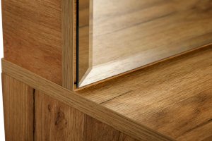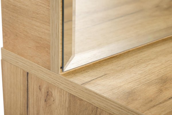 • Слева – зеркало, тумба с 2 выкатными ящиками на шариковых направляющих бокового крепления не полного выдвижения