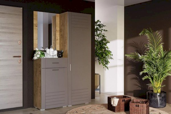 Тумба Livorno НМ 040.65 поможет в организации систематизированного хранения обуви в прихожей. Пространство за распашной дверью разделено на две секции посредством полки. Такая конструктивная особенность позволяет аккуратно расставить большое количество обуви внутри тумбы и избежать беспорядка при хранении. Модуль также оборудован выдвижным ящиком для ключей/кошельков/документов, которые должны быть в быстром доступе при сборах.