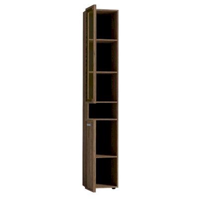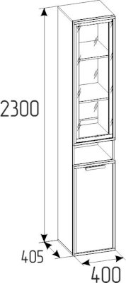 Высокий шкаф для хранения идеально подходит для комнаты подростков, в которой слишком много разнообразных и таких "нужных вещей". Верхний рамочный фасад с тонированным стеклом открывается за раму, нижний фасад Контур открывается за серую ручку из массива. Верхний и нижний фасады можно перенавесить на левую и на правую стороны.