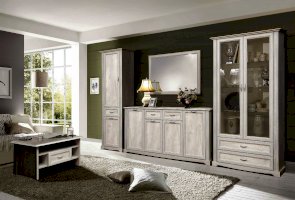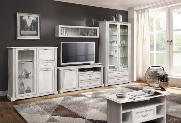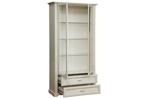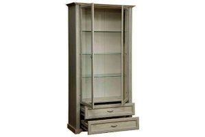 Комбинированный шкаф-витрина – это не только удобно, функционально, но еще и очень красиво. Такая модель – мечта любой хозяйки. Прозрачные дверцы-витрины в обрамлении рамочной фасадной конструкции превращают шкаф в настоящую картину, которой можно любоваться. Наполнение зависит от ваших желаний, целей и задач. Чаще всего в таких шкафах располагают посуду, которую хочется продемонстрировать – и себе, и гостям. Внутри находятся четыре полки: три стеклянные, и одна из ЛДСП – самая нижняя, которая одновременно является перегородкой и отделяет верхний отсек от нижнего - с двумя выдвижными ящиками. Тонкое закаленное стекло полок очень прочное, несмотря на свой хрупкий внешний вид – каждая полка выдерживает до 3 кг. И только нижняя, из ЛДСП – до 5 кг – поэтому на нее можно поставить посуду потяжелее. Этот шкаф также будет отлично смотреться в кабинете. Научные труды или художественная литература, выставленная на полках, скажут и сами за себя и охарактеризуют своего хозяина с самой выгодной стороны – как личность неординарную и интеллектуальную. Кстати, если вы коллекционер, то в таком шкафу будут прекрасно выглядеть ваши коллекции – от спортивных кубков до моделей кораблей. Два нижних выдвижных ящика находятся один над другим. Благодаря современным технологиям дверцам и выдвижным ящикам не нужны доводчики – они легко и дружелюбно распахиваются и выдвигаются навстречу  по первому желанию хозяев. Шариковые направляющие обеспечивают очень плавный ход.