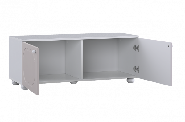 Тумба оснащена двумя распашными дверцами, за которыми располагается вместительное внутреннее пространство для хранения книг, игрушек, текстиля и других необходимых вещей. Такое решение позволяет скрыть содержимое и сохранить аккуратный внешний вид комнаты.