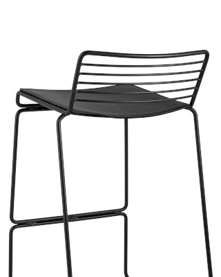 Современная модель барного стула Danny подходит как для интерьера обеденной зоны дома, так и для кафе или ресторана. Спинка и сидение выполнены из металлических прутьев черного цвета. Подушка изготовлена из черной экокожи в тон каркасу. Ножки выполнены из металла в тон сидения и имеют подставки, которые предотвращают скольжение по поверхности пола.